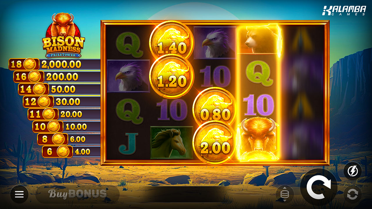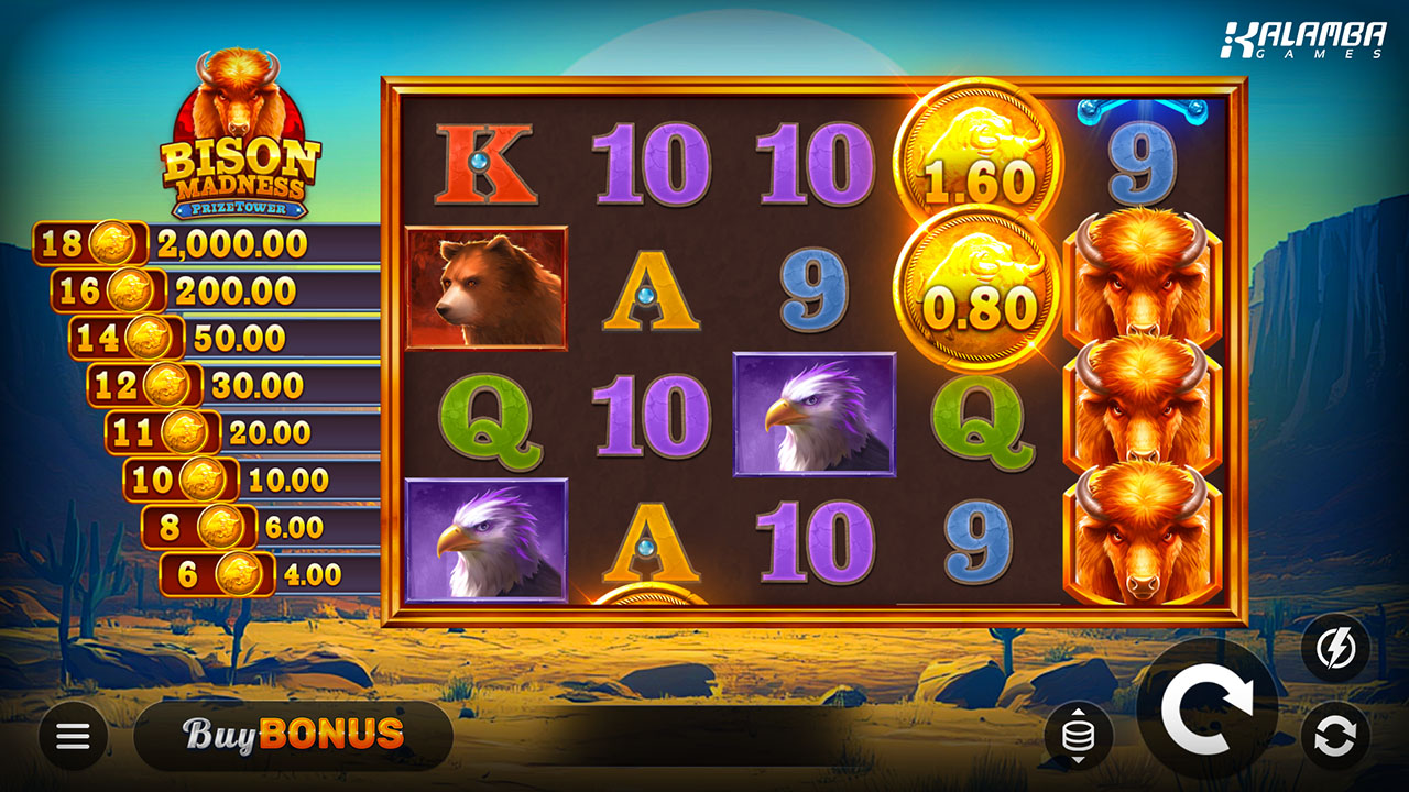 Stampede into Bison Madness PrizeTower™, a 5×4, 1024 ways slot built for thrill-seekers and bison buffs alike.