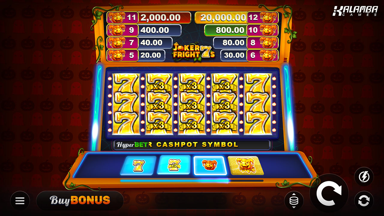 Get ready for yes, you guessed it, a truly spook-tacular video slots experience with Joker Fright 7s! Including four HyperBetR levels, Cashpots, Free Spins, Buy Bonus and more, Joker Fright 7s is a hauntingly good ride full of thrills AND chills!