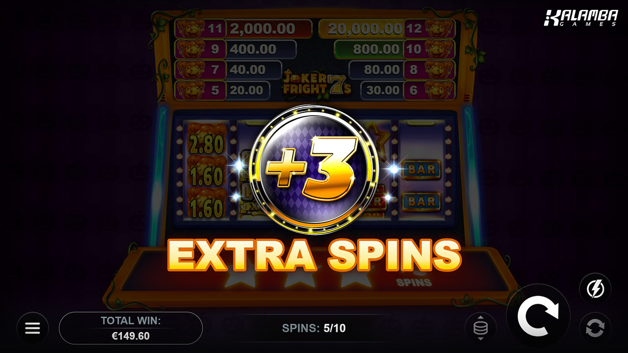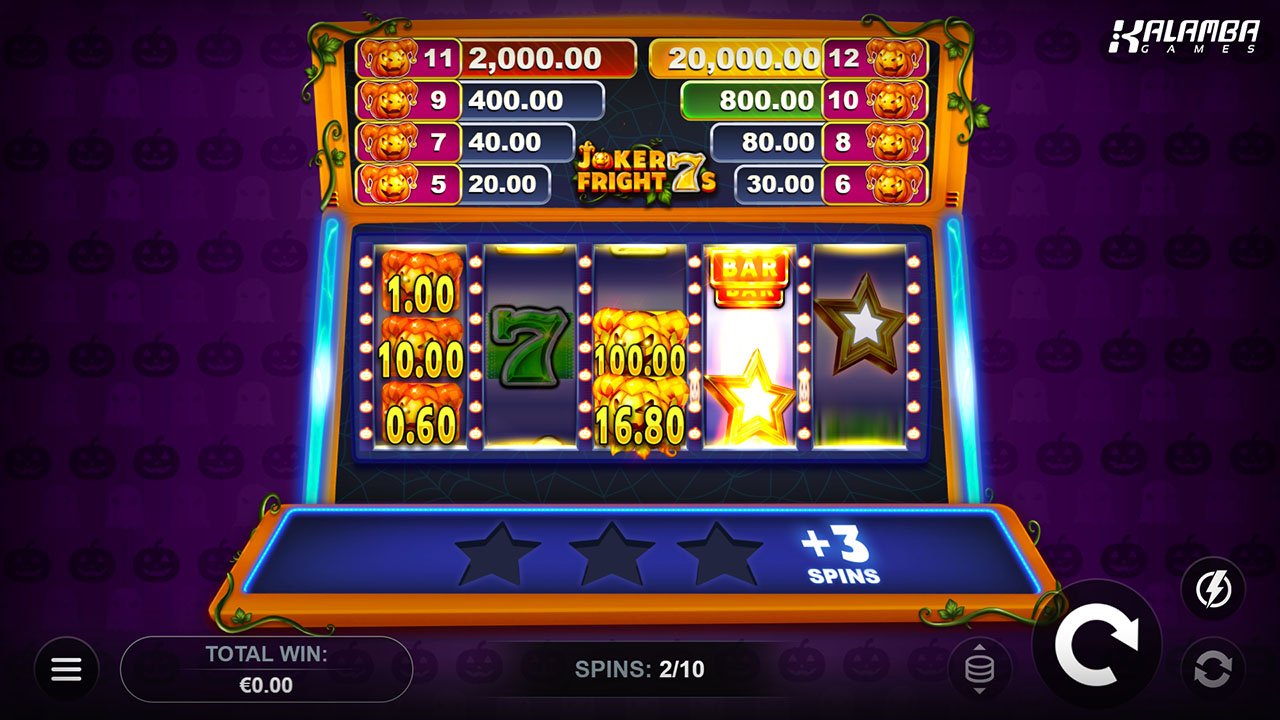 With its fast-paced, terrifying gameplay based on fan-favourite game mechanics and features, Joker Fright 7s is Halloween wrapped up in one handy video slot!